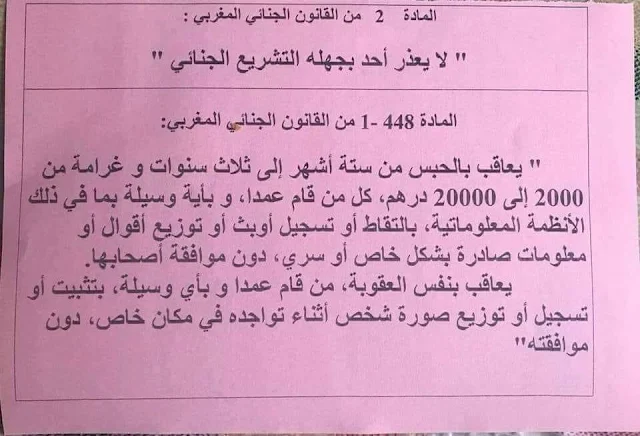 قانون الجنائي المغربي يعاقب كل من نشر صور ..........